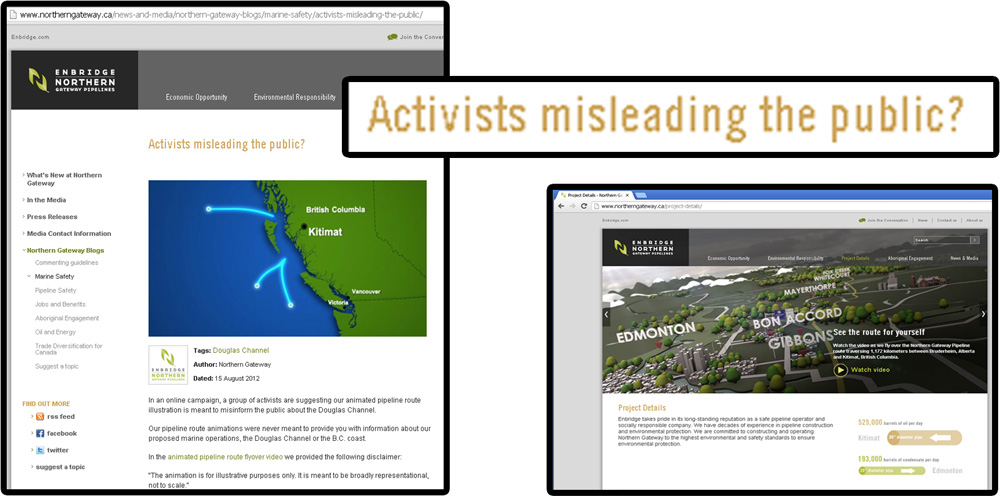 activists of misleading the public – the blog Enbridge created in response to criticism of the route animations.